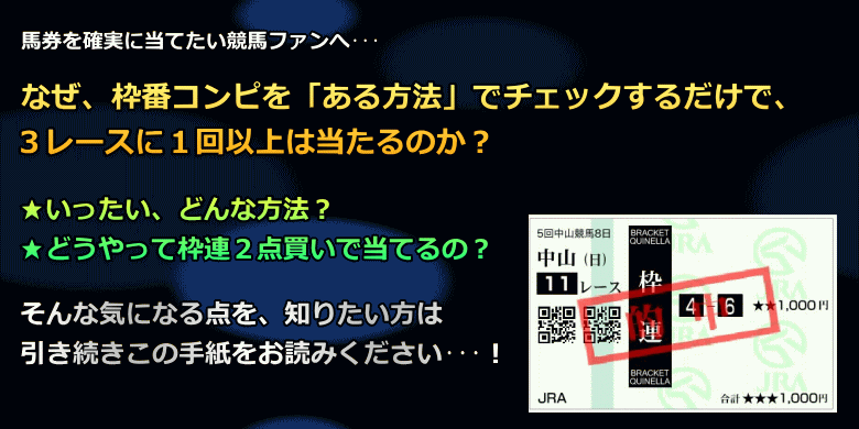 たったこれだけで、あなたも枠連がドンドン当たるはずです。
