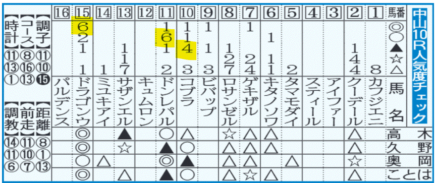 ここで、このレースの「人気度チェック」を見てみると面白いことが分かります。 ↓